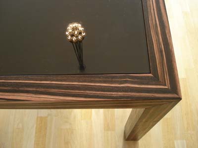 Tisch aus Makassar-Ebenholz mit lackierter Glasplatte