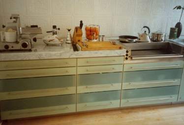 Küche, Material: Glas / Edelstahl / Birkenholz / Marmor