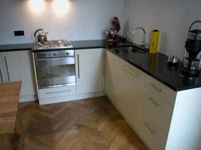 Küche, Material mdf / Lack, Arbeitsplatte Granit
